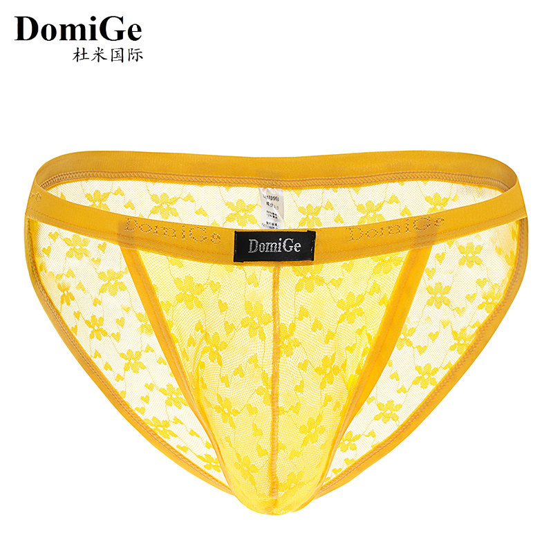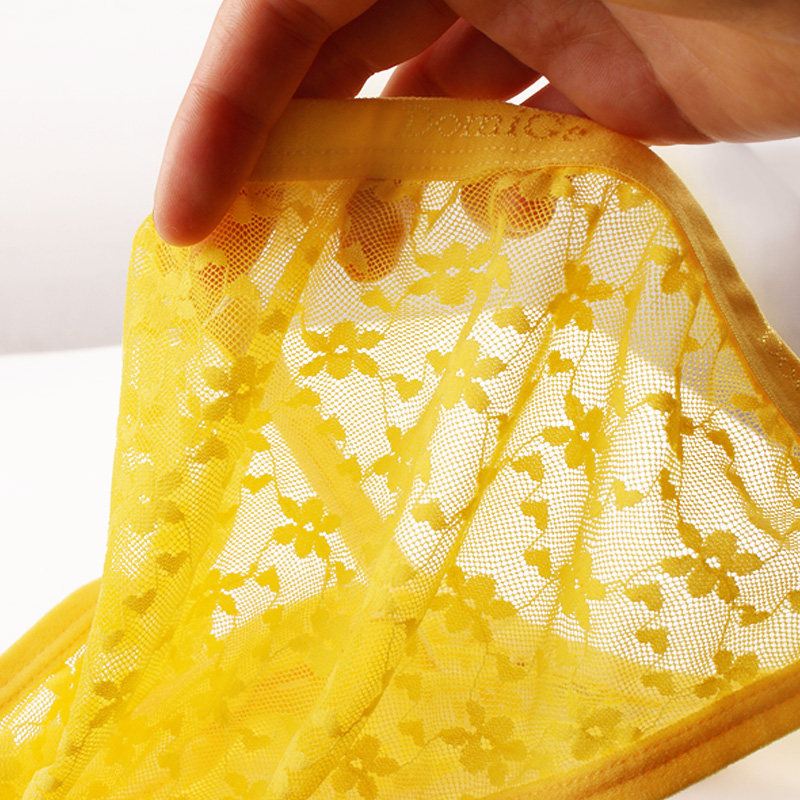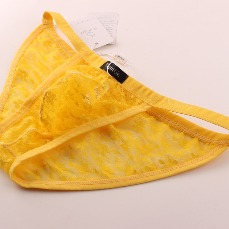 Men's Underwear Lace Fabric Sexually Apologetic Yellow Ice Silk Mesh Perspective Low Waist Triangle Pants Slim