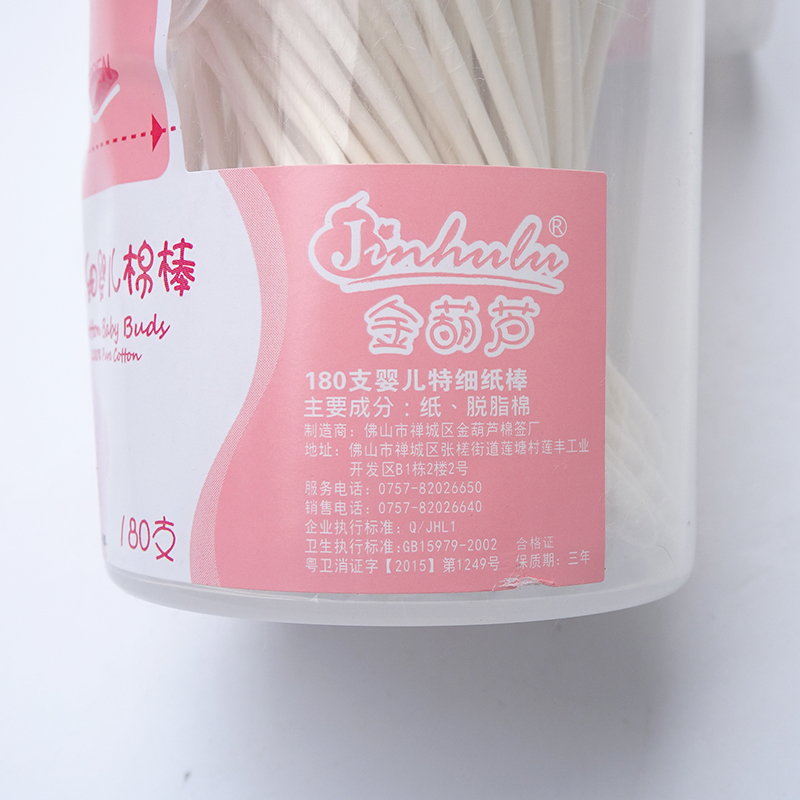 Golden gourd baby ultra-fine cotton swab 180 pieces baby buckle ear booger cotton swab double-headed cosmetic cotton paper stick