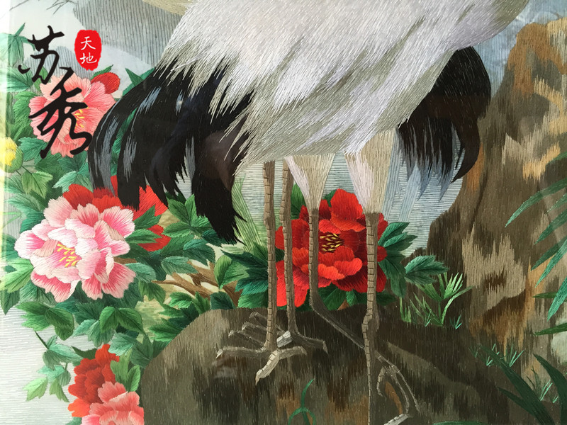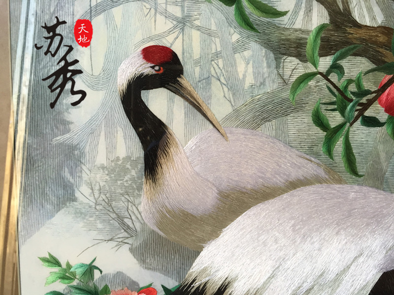 Embroidery painting Su embroidery finished product hanging drawing room decoration painting pure hand mural fairy crane wishing life to the elders