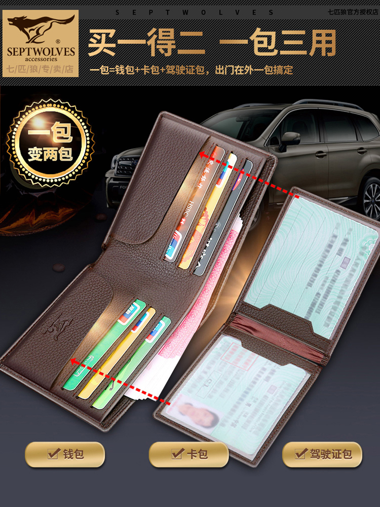 Dark brown leather (wallet and driver's license cover) Black leather (wallet and driver's license cover) Style four brown leather (three-fold) Style four black leather (three-fold)