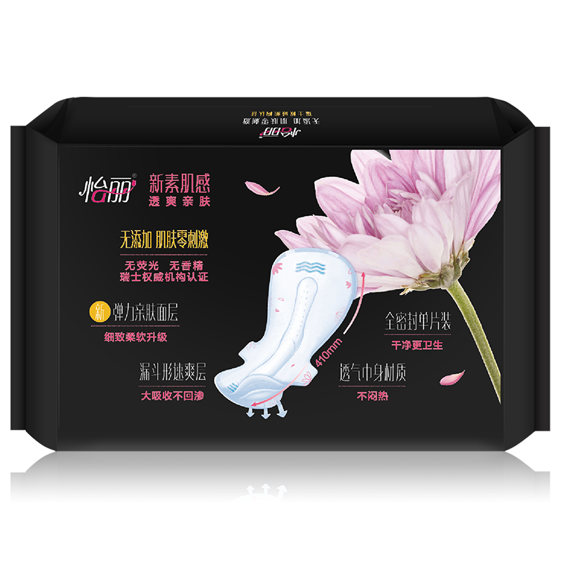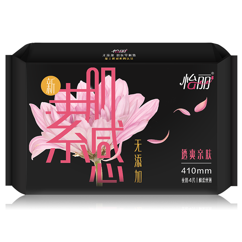 New date Yili sanitary napkin soft, ultra-thin, translucent, skin-friendly, ultra-long night with maternity aunt towel 410mm4 pieces