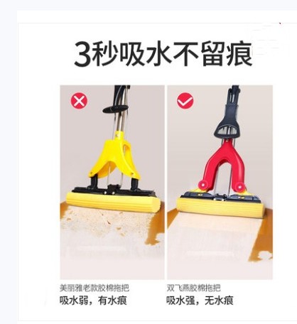 Beautiful elegant double flying swallow rubber cotton mop folio and squeeze water drag free hand washing biwing bird sponge mop