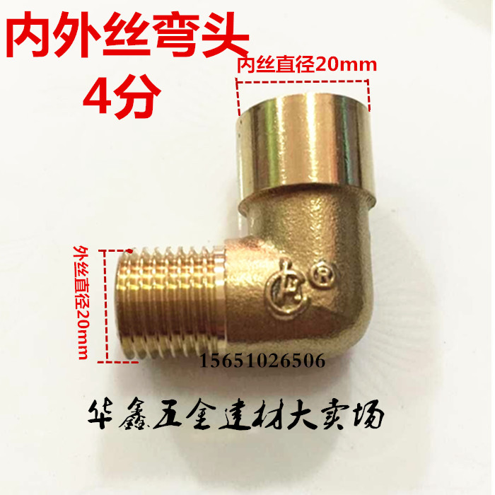 Copper elbow double internal wire elbow external wire elbow internal and external wire 90-degree elbow water pipe gas connector 2 points for 4-6