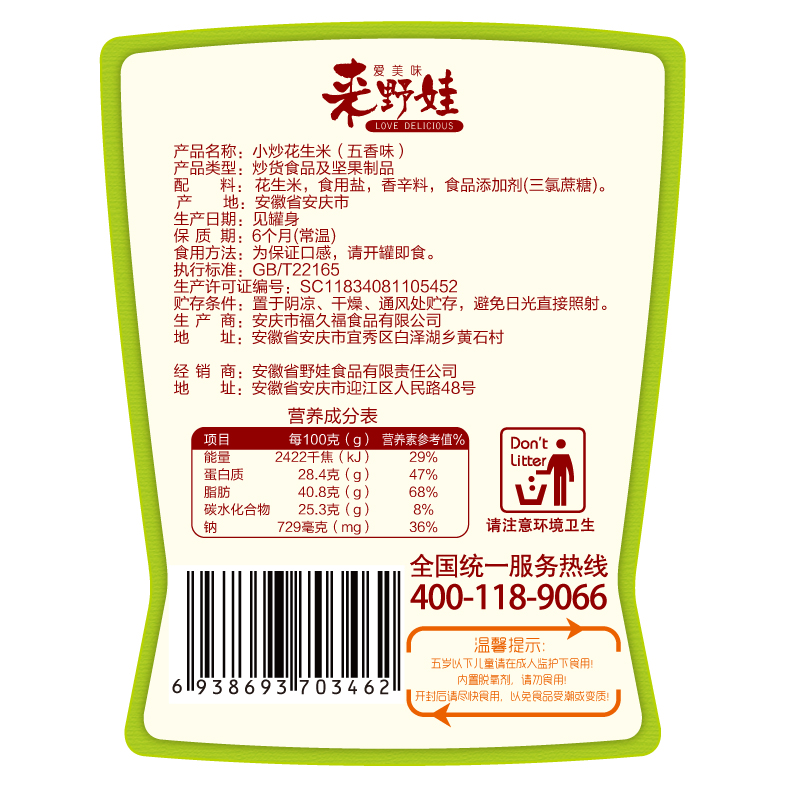 Wild baby snacks Nuts fried goods specialty Delicious crispy new spiced peanut rice wine vegetables 750g cans