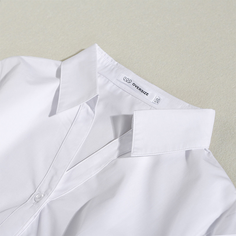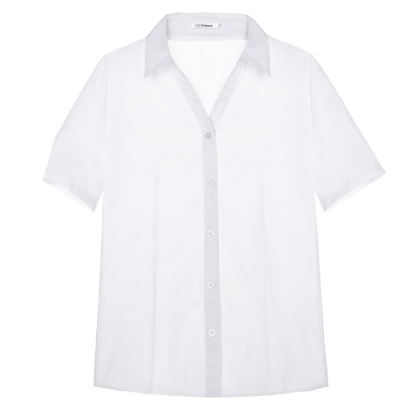 Cotton short sleeves anti-walking light Gats up extra yards white shirts women Summer Fat mm200 catty of work clothes Positive Dress Uniform Ol
