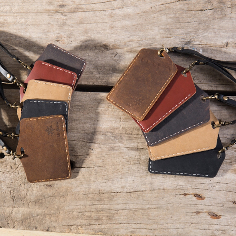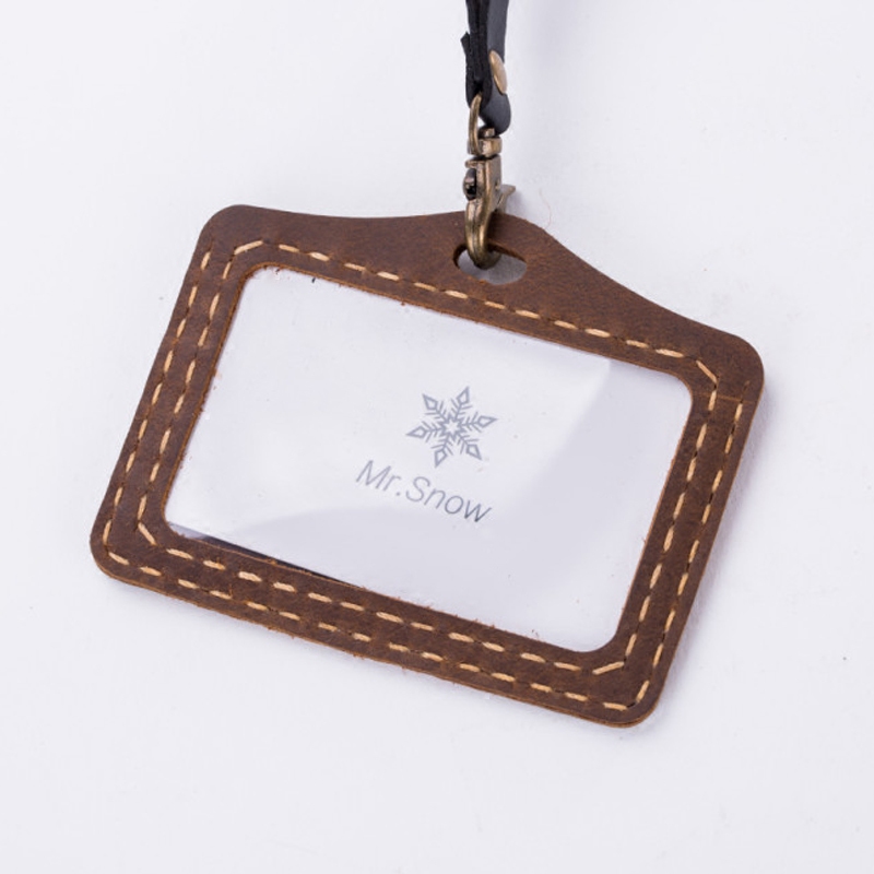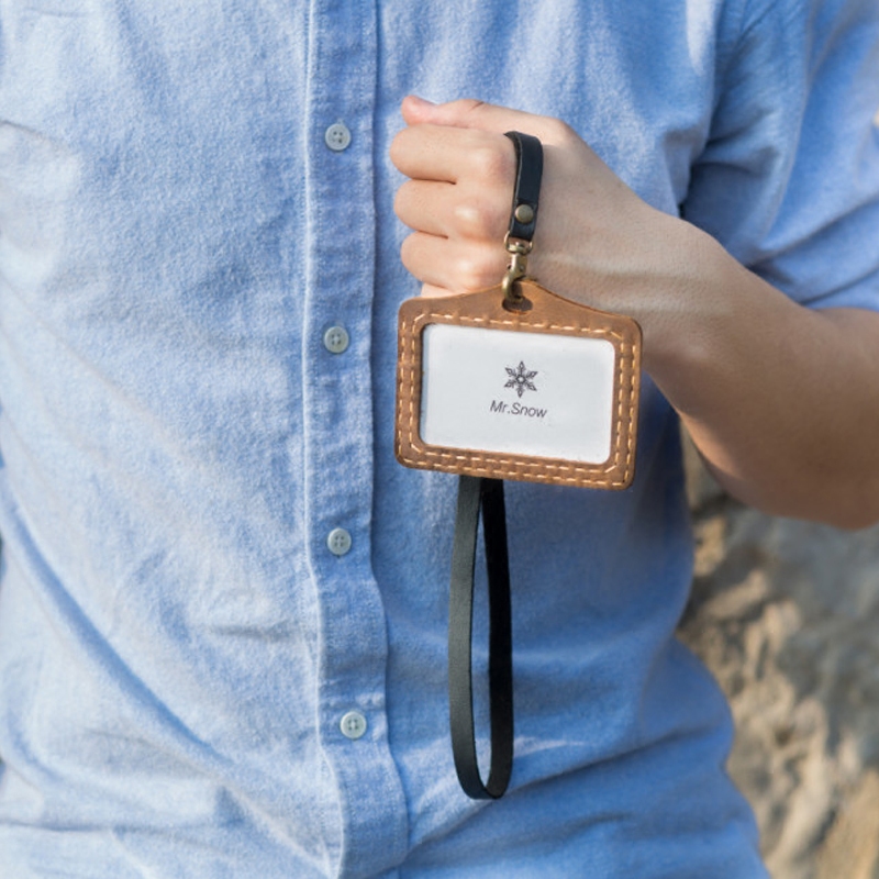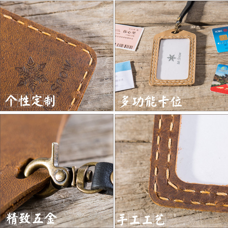 Bus card horizontal Japanese and Korean lanyard student couple subway door card handmade leather meal card work card set custom