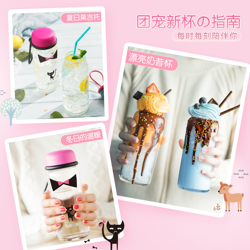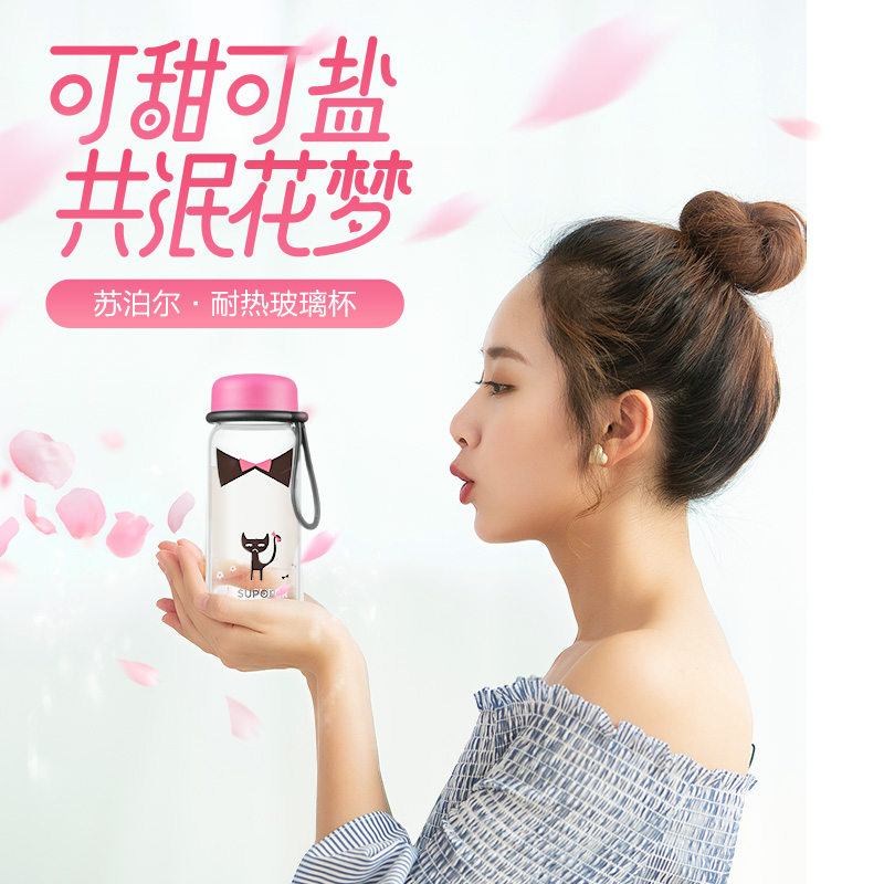 Supor glass water cup female cute girl portable simple fresh Mori creative trend ins Wind tea cup