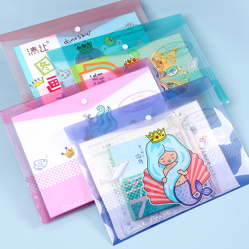 Qingjang stationery Cute cartoon transparent document bag Folder information bag A4 plastic portable student small file bag