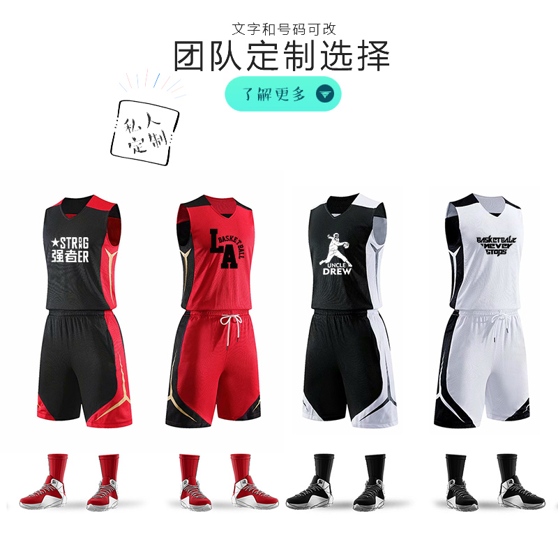 Double-sided basketball uniform suit men's custom children's basketball suit printing student training game new product vest