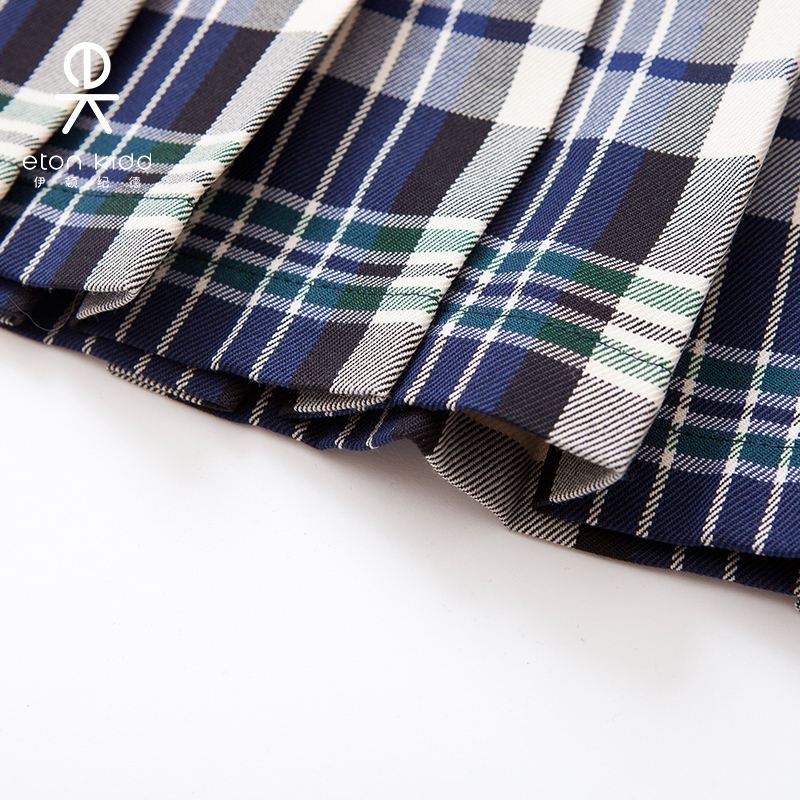 Eaton Guild primary and middle school students' school uniforms girl rice white 100 pleats short dress plaid half-body skirt 16Q256