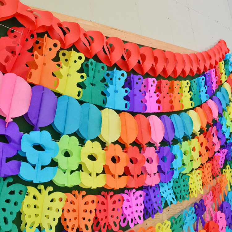 The Rui Rui teaches the classroom to dress the festive party to decorate the flower car Seven colorful paper laps