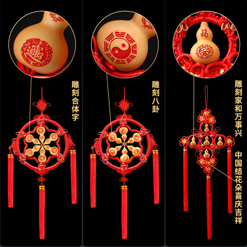 Gourd pendant size Chinese knot home decoration Bagua Zhao Cai natural living room entrance wall hanging decoration ornament