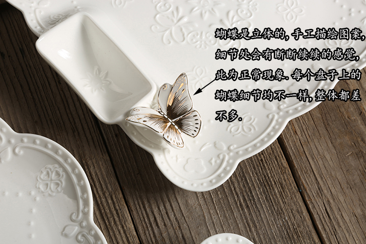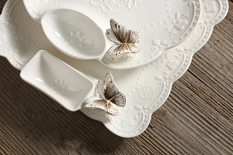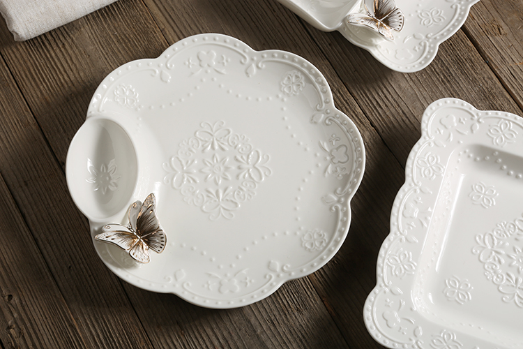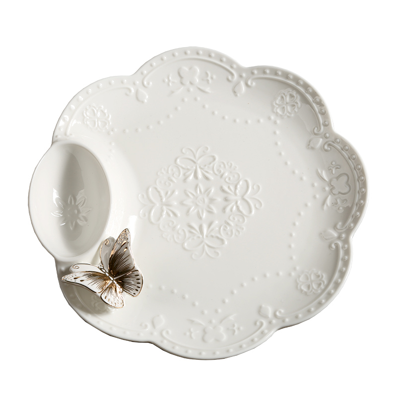 New Sketching embossed butterfly disc Ceramic Dinner Plate Water Dumplings Fruit Dish Fruit Dish