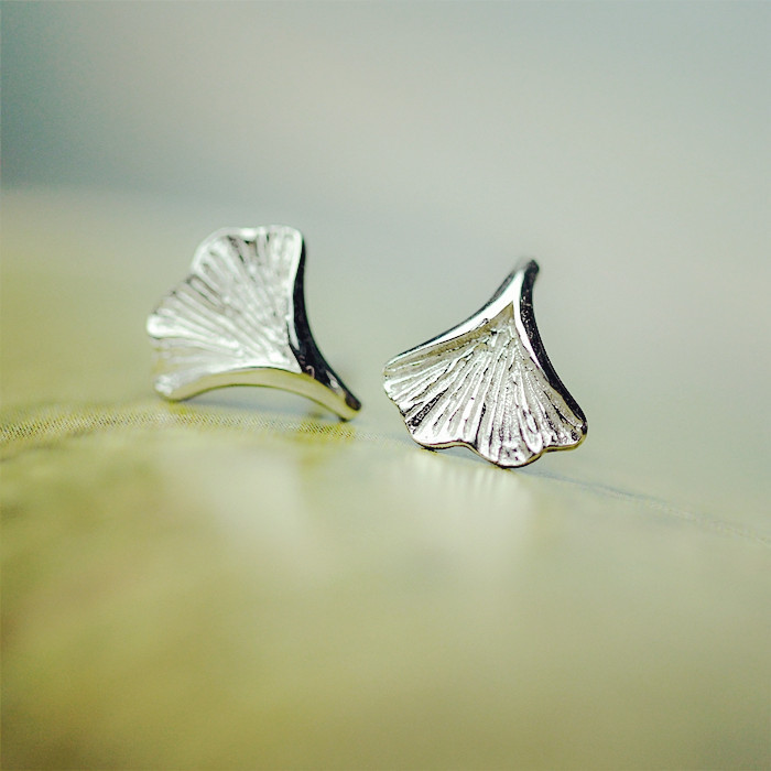 Small Z Youpint Korea straight delivery 925 pure silver handmade gingko Ginkgo Temperament Otoli Anti-Allergy do not fade