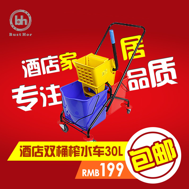 Hand push cleaning car press water car large thickened large capacity double barrel water squeeze car squeeze water car mop bucket mopping bucket