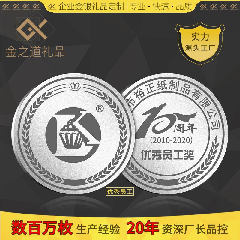 Golden Way silver coin custom photo logo lettering Employee induction anniversary coin Retirement gift Sterling silver medal