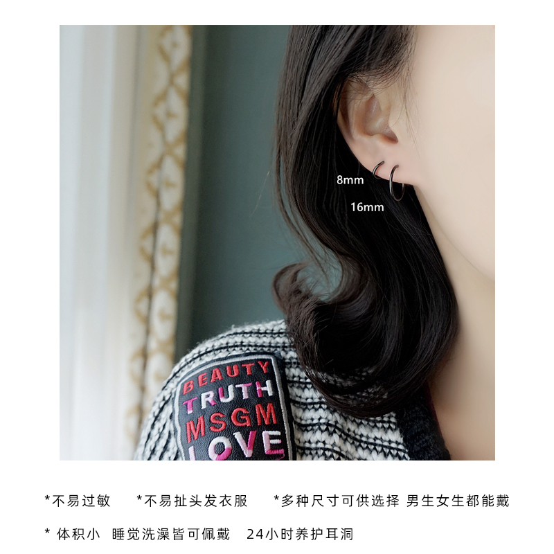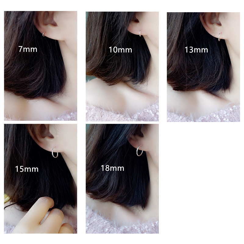 Silver The smallest 7mm or so can only be worn on the ear bone Silver 10mm or so Suitable for thin earlobes or ear bones Silver 13mm or so General earlobes can be worn silver 15mm or so