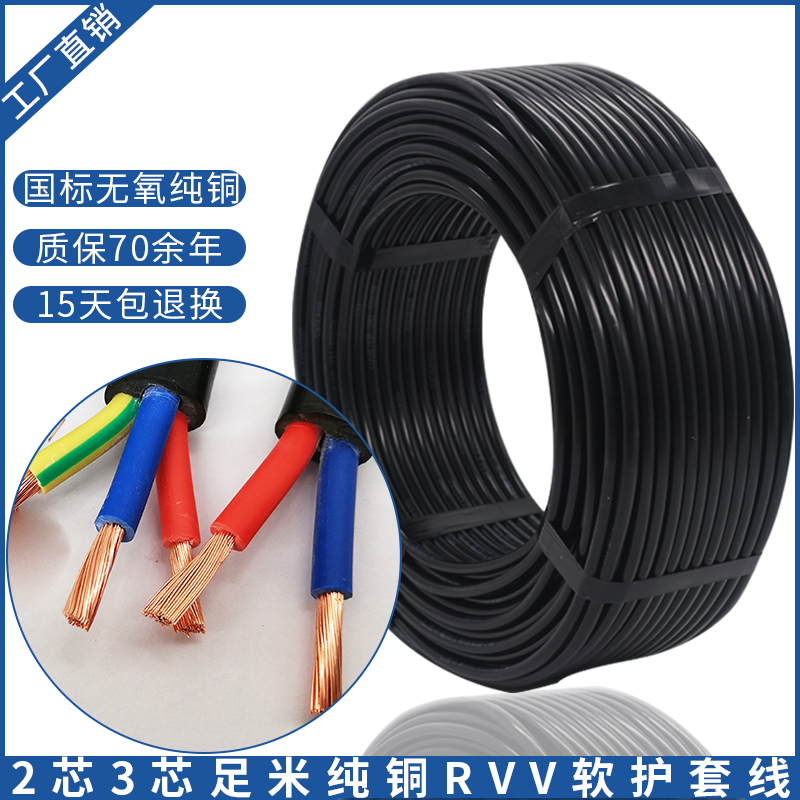 Wire RVV2 core 3 core 1 1 5 2 5 4 6 square sheathed wire waterproof and antifreeze GB pure copper core cable