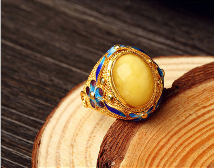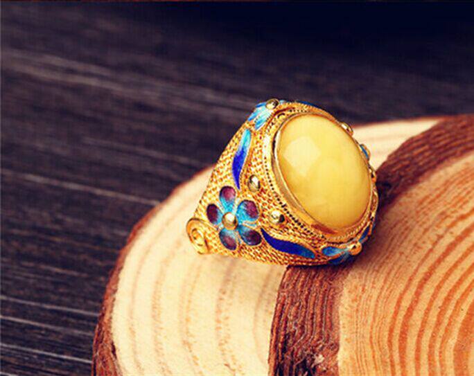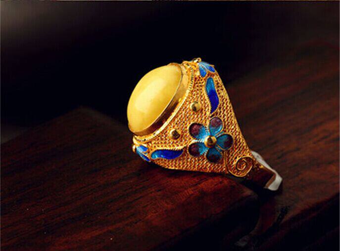 Silver-plated * filigree inlaid enamel color * beeswax * live ring ring * palace retro male and female ring * fashion ring