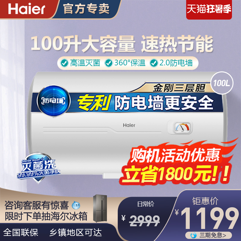 Haier electric water heater electric household 100 liters large capacity water storage type instantaneous heat speed heat first-class energy-saving bath shower