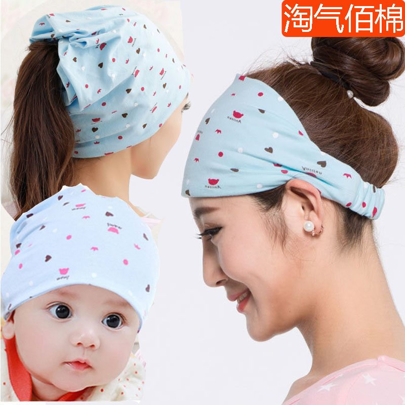 Parent-child 3 pieces (2 headscarves blue 1 powder 1 1 blue baby hat parent-child 2 pieces of blue hollow top paragraph (1 large 1 small) embroidered elastic headscarf pink rabbit long ear parent-child 2 pieces of pink