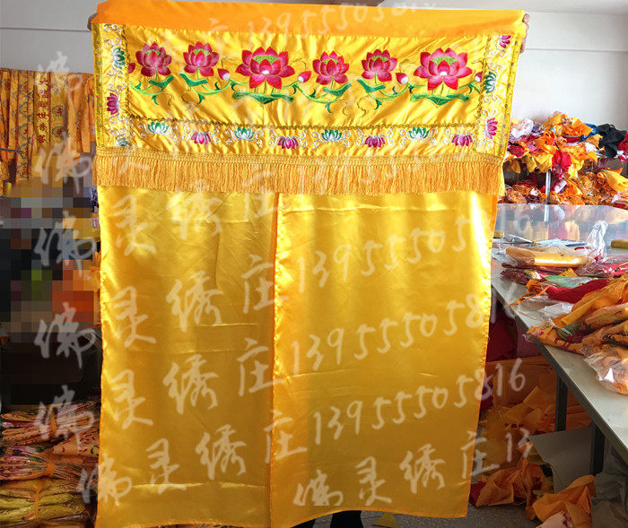 Buddha's front blocking curtain Lotus Embroidery Gods Tent Buddha Phop Photos of Longmen Tent Dragon Tent Buddhist Buddhist Hall Decorative Background Wall Bumen