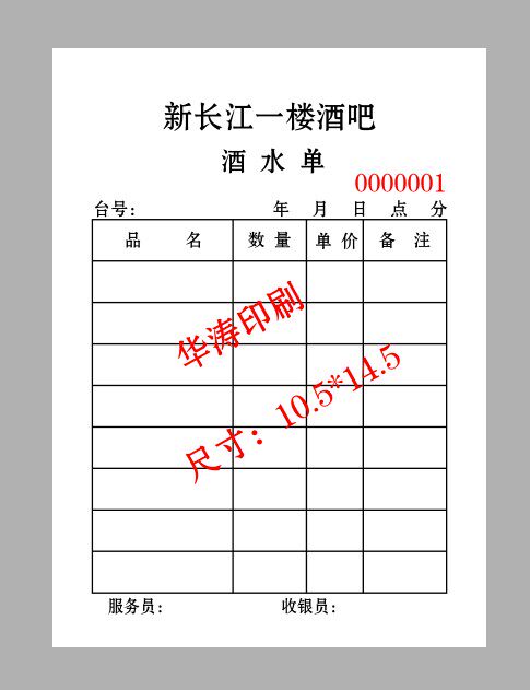 Wine Water Single Customized Second Triple Hotel Bar Tea Building Point Menu No Carbon Automatic Rewritten Cashier Bank Bill Document