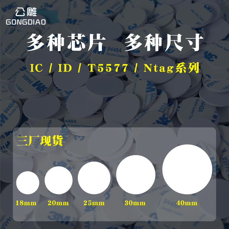 Fudan IC Coin card 25mm 30mmID round coin card TK4100 transparent access card 3m back Coin card RFID induction Coin card M1 ID special card