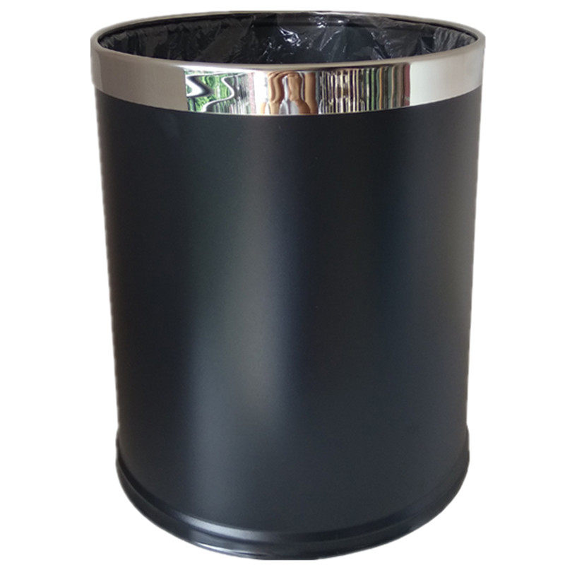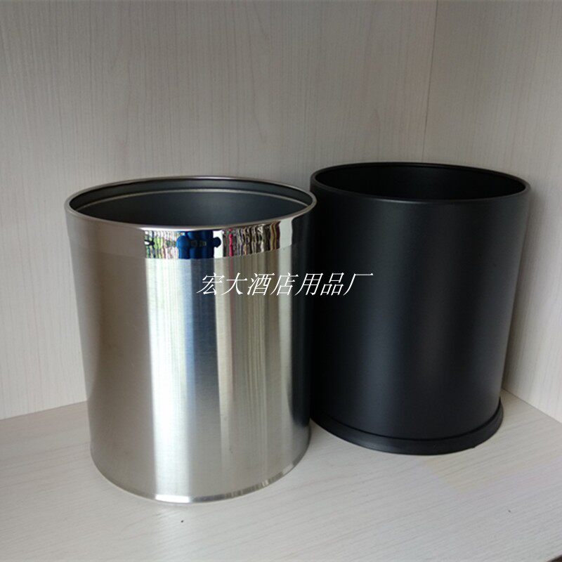 Thickened Hotel Stainless Steel Trash Can Round Living-room Bins Household Guesthouses KTV Double bin lid No lid