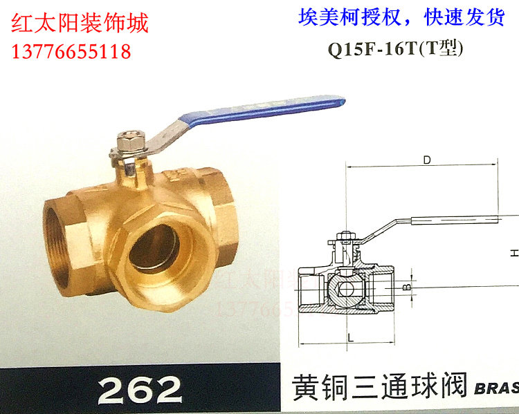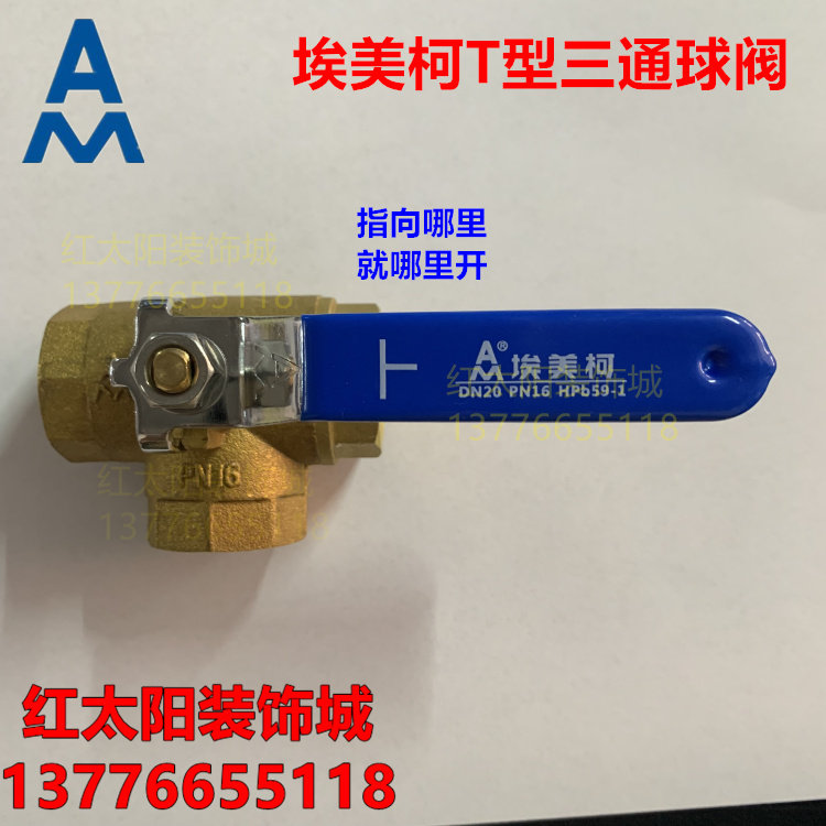 Emmeco 262 brass T-type three-way ball valve thickened 4 minutes 6 minutes 1 inch DN15 20 25 32 40 50