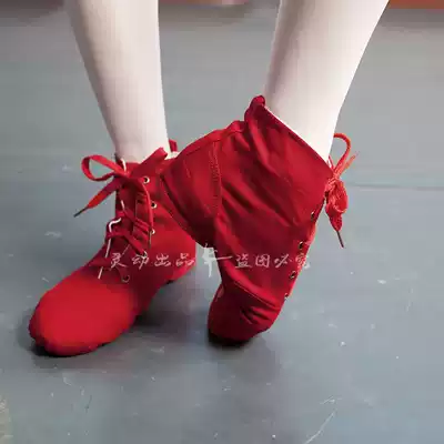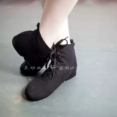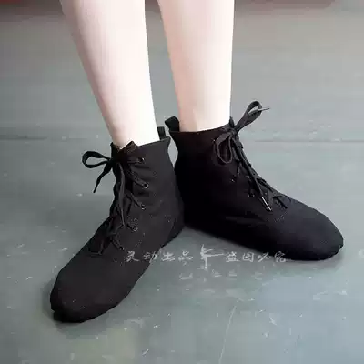 Jazz dance shoes canvas dance shoes soft bottom black men's high tie-up jazz boots exercise shoes with adult women