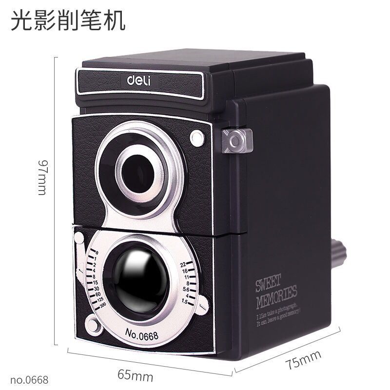 Deli pencil sharpener Retro camera pencil sharpener Creative hand-cranked pencil sharpener Student pencil sharpener Adjustable thickness