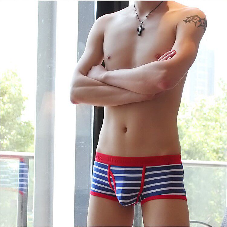 Striped men's panties men's boxers sexy hipster male personality pure cotton low-rise student Korean version of youth boxer tops