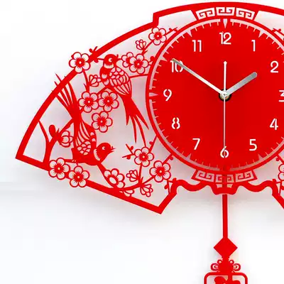 Ya Ke Li wall clock living room Chinese style mute modern simple creative art fan-shaped clock personality quartz clock
