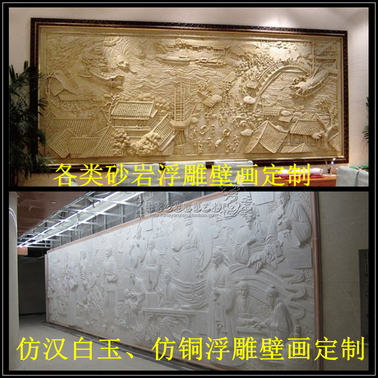Sandstone custom mural exterior wall garden flower pot landscape dragon phoenix welcome song Great Wall FRP imitation copper campus relief