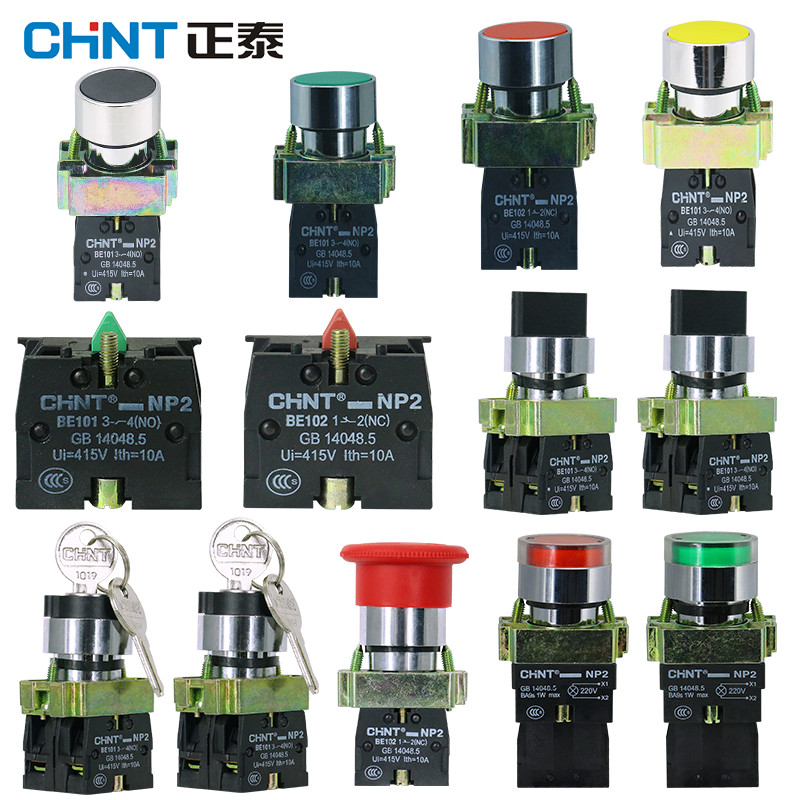 CHINT push button switch NP2-BD self-reset self-locking mushroom head BA flat button two or three knob contact point BE101