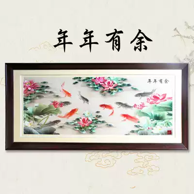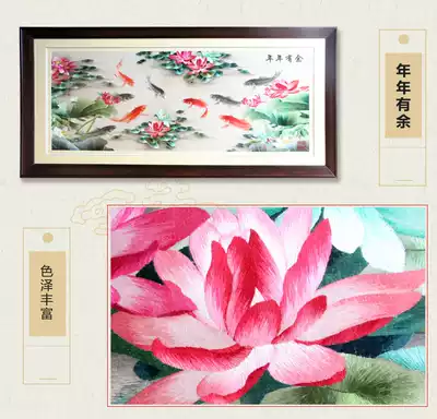Hunan embroidery boutique has more than year Lotus fish living room bedroom decoration painting pure hand embroidery Hunan specialty