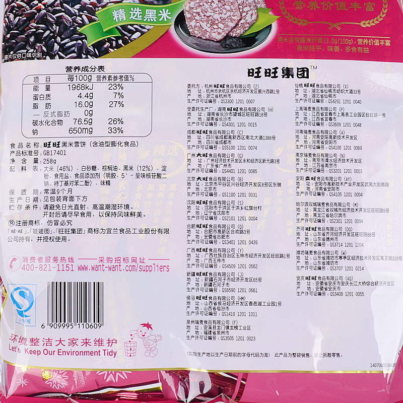 Want Want Black rice cake 258gX2 bags puffed snacks Xianbei rice cake Children's puffed leisure small snacks