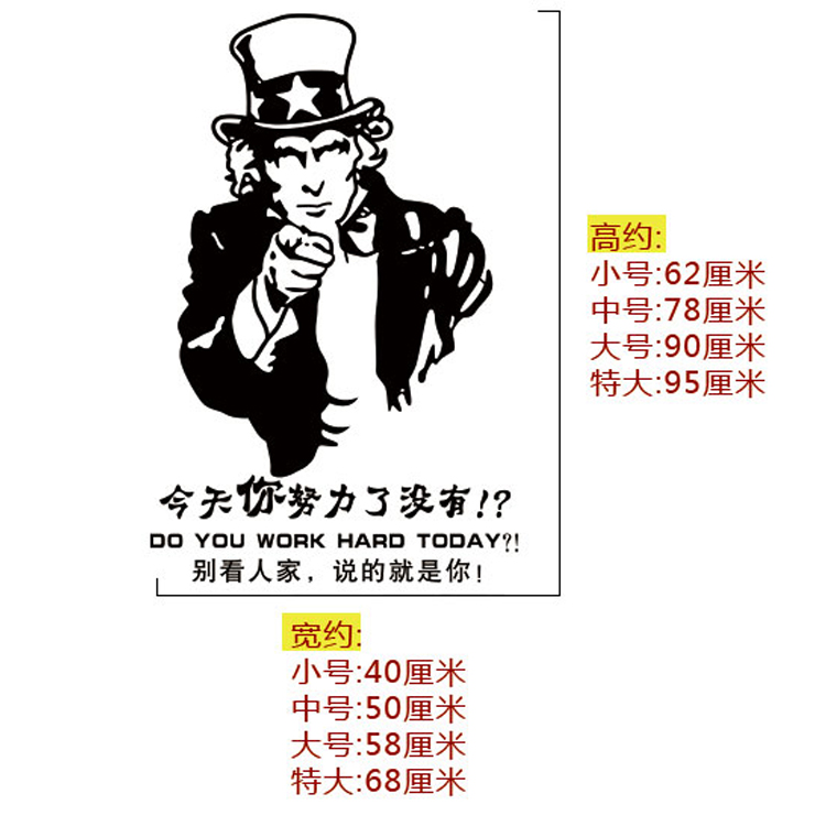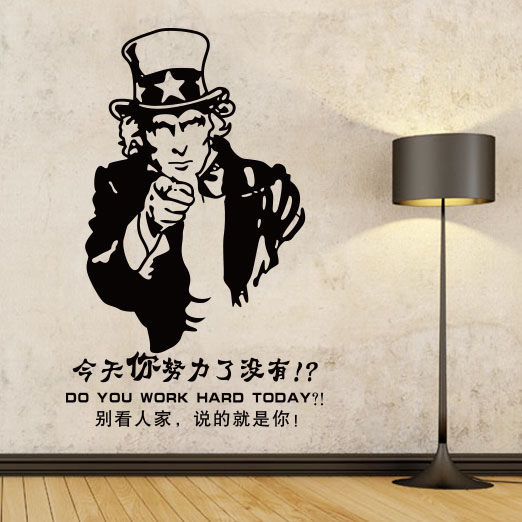 Did you work hard today? Uncle Sam Inspirational Text Office Dormitory Company Wall Sticker 7028