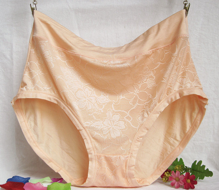 Fatty plus size modal women's underwear middle and high waist triangle pants lace bamboo fiber inner pants fat MM Big Red