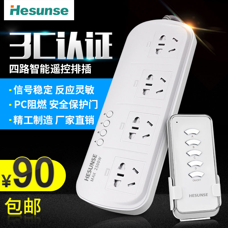 Hesen smart socket wireless remote control switch four high-power independent control power supply row plug 220V wiring board