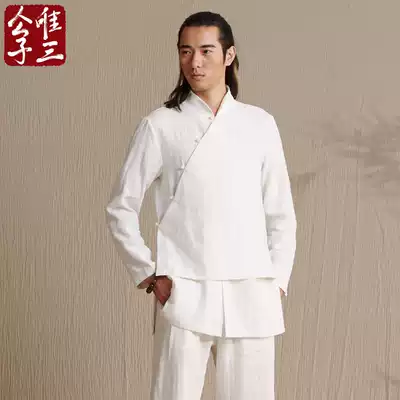 Only three meditation tea clothes Chinese style male Buddha system Tang suit, slant, Monk Han suit male Wei Jin ancient style autumn and winter