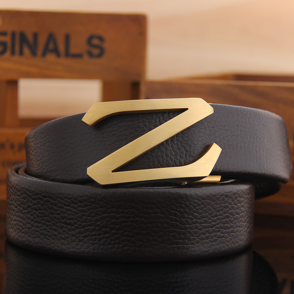Ailanbao business men's belt automatic buckle leather stainless steel Z letter first layer cowhide belt men's middle-aged tide