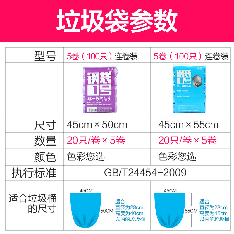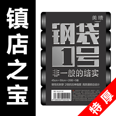 Steel bag 1st special thick garbage bag Kitchen powder room household thickened plastic bag 5 rolls of medium and large