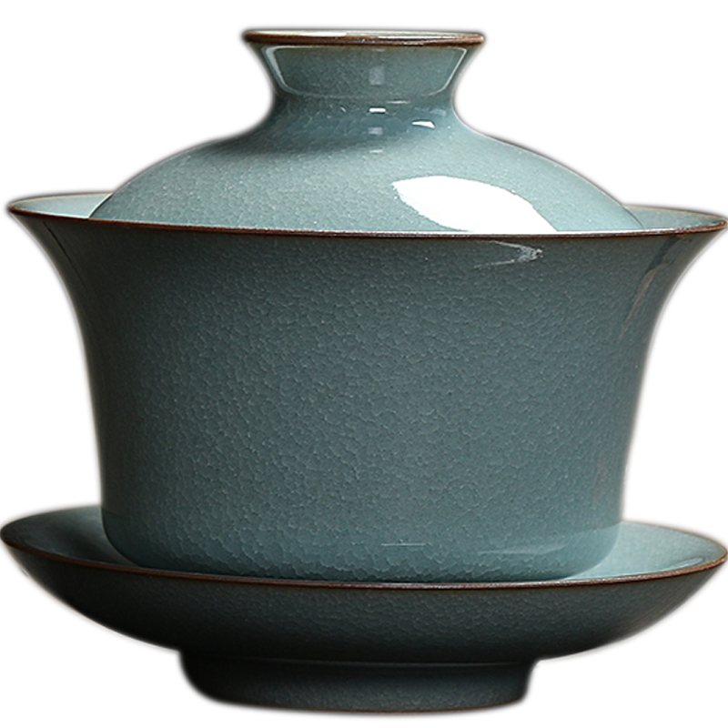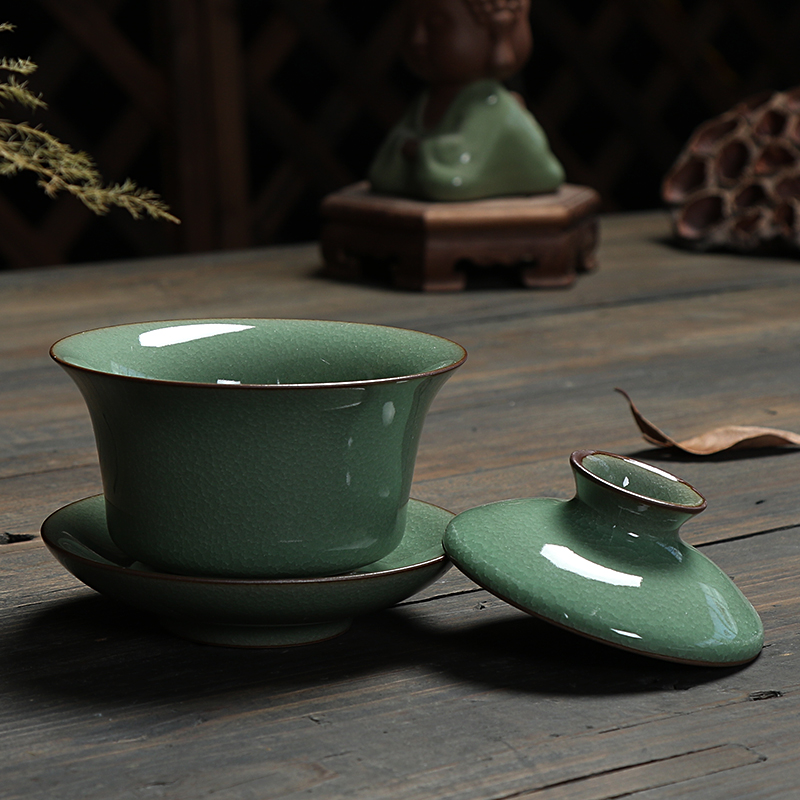 Pro-prosody iron bone Wang Wen fish Ovulate Three Talents Bowl Cover Bowl Tea Cup Tea Big Number Ceramic Kung Fu Tea Bowl Green Porcelain Home