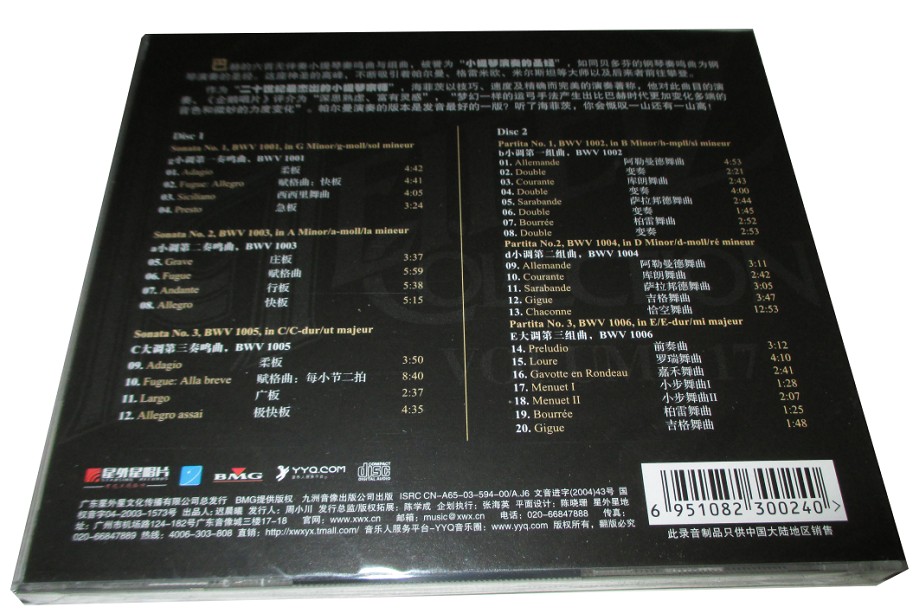 Genuine Bach A cappella violin sonatas and suites (2CD) played: Heifetz album