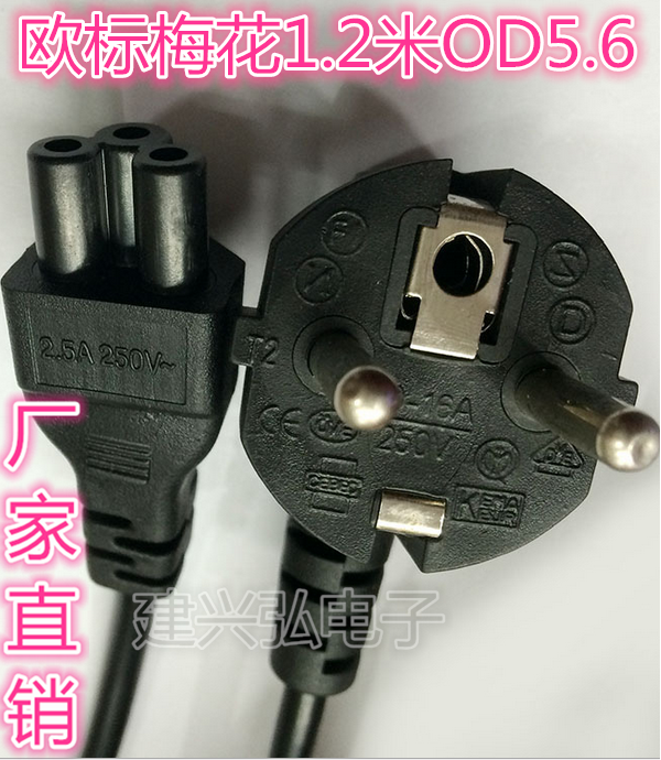 Direct sales Euro gauge power cord Euro-style European peplum tail power cord laptop power cord 1 2 m