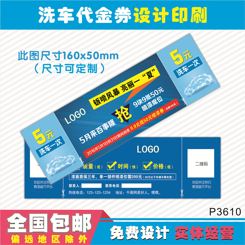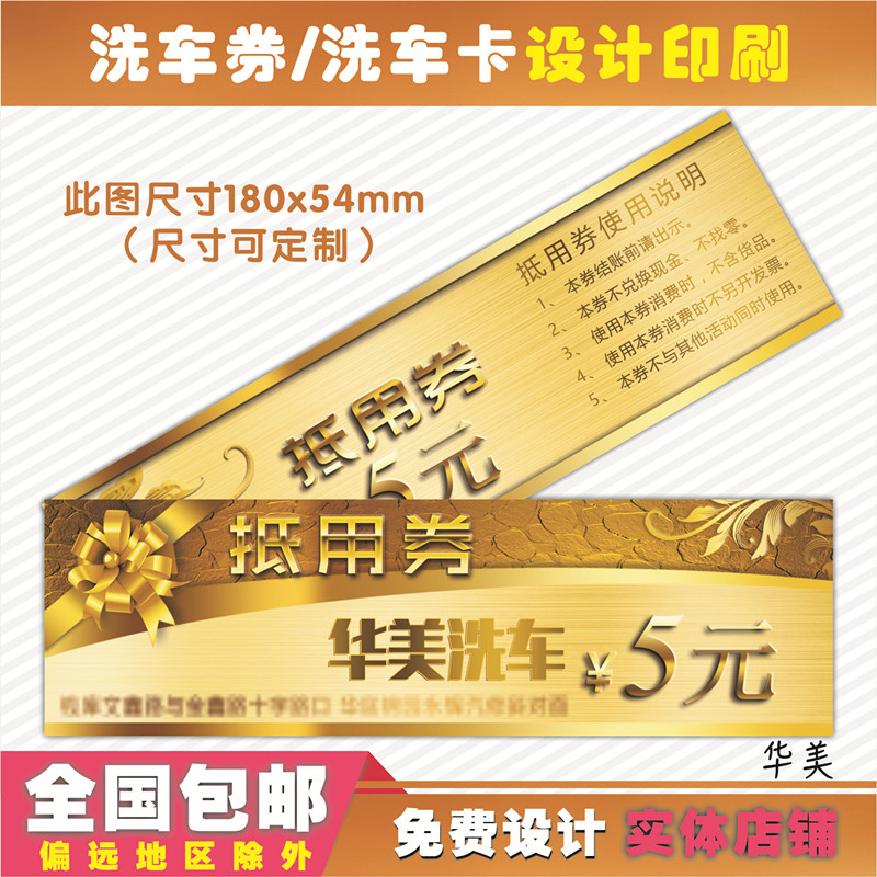 Voucher custom free car wash discount activity volume custom car beauty experience card custom printing design