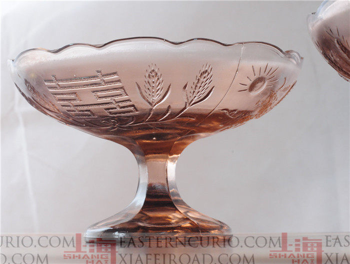 Cultural Revolution Old Shanghai Antique Glass Fruit Plate Old-fashioned Glass Bottle Carved Nostalgic Fruit Plate Collection Western Old Goods