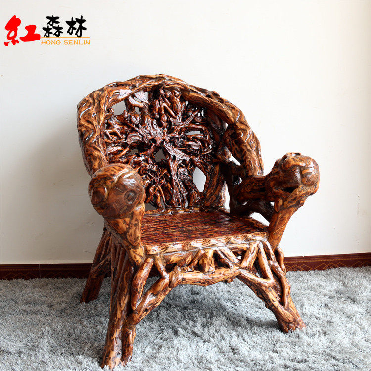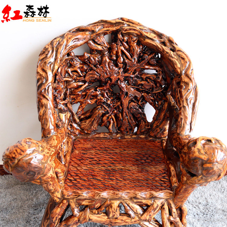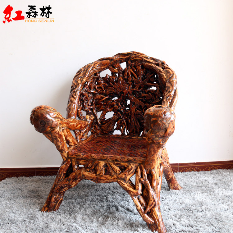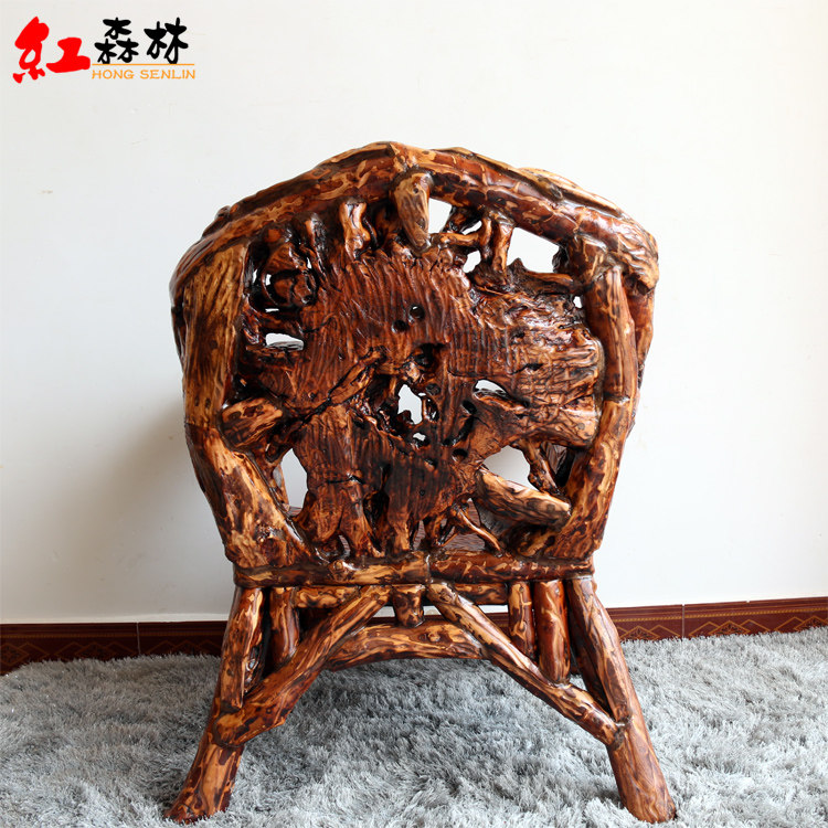 Root Engraving Leaning Back Chair Casual Chair Vintage Cuckoo Root Taike Chair Natural Solid Wood Furniture Gift Collection